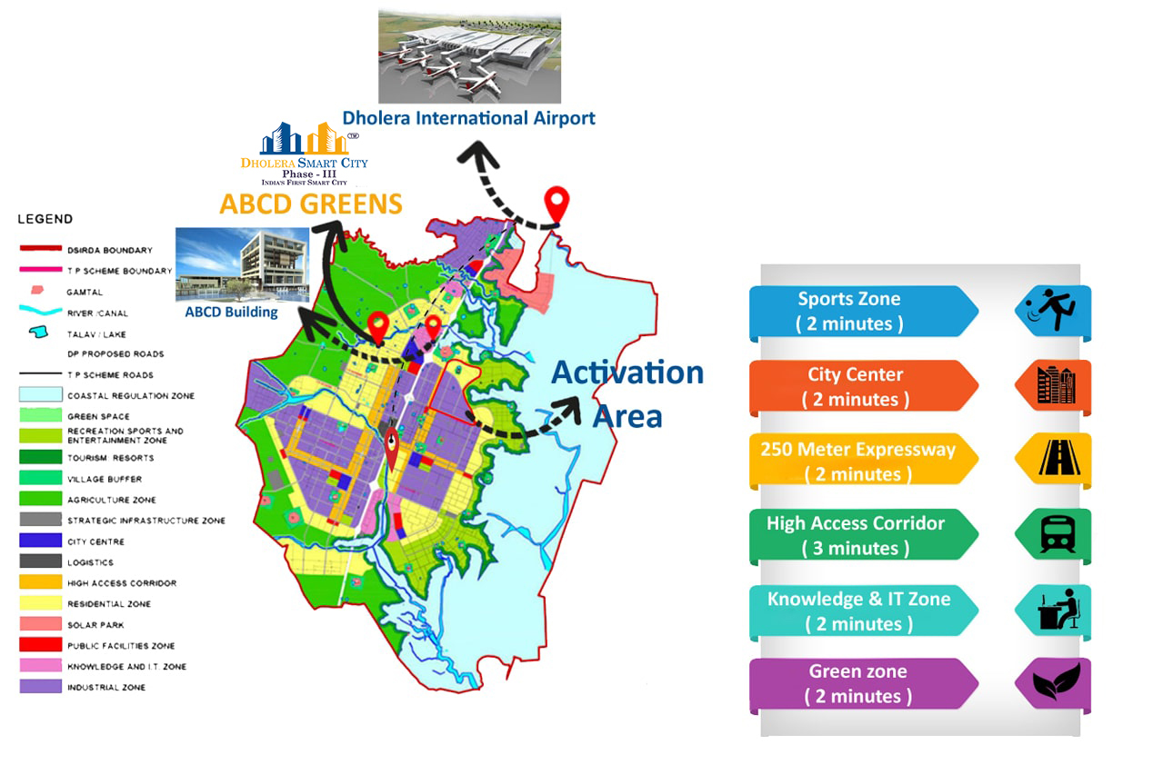 Dholera SIR embodies a visionary approach to sustainable urban development, integrating advanced infrastructure like the Dholera International Airport, the Solar Park, and efficient transport systems. The ABCD Building will centralize command and control, ensuring seamless operations. Together, these initiatives position Dholera as a hub for innovation, connectivity, and renewable energy, paving the way for a prosperous future.